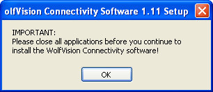 Start the installation of the WolfVision Connectivity software by double clicking on the "wolfusb_win.exe" file. note